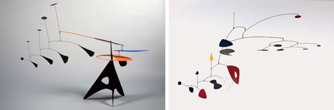 Alexander Calder: Blue Feather, 1948, Calder Foundation; Yellow Sail, 1950, Weatherspoon Museum, University of North Carolina