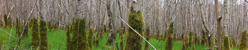 Herbs etc. (selected species) - hard shield-fern, moschatel, ladies mantle (Alchemilla glabra only), wood anemone, lords and ladies, the sedges Carex caryophyllea and C. sylvatica, opposite and alternate-leaved golden saxifrage, pignut, marsh hawksbeard, wild strawberry, woodruff, wood cranesbill, marestail, hairy St. John’s-wort, hairy woodrush, dogs mercury, three-veined sandwort, burnet saxifrage, primrose, goldilocks buttercup, greater stitchwort, marsh valerian, common valerian, northern marsh orchid, hazel, ladies bedstraw, bluebell, yellow iris, ox-eye daisy, creeping jenny (introduced deliberately), crab apple, red-berried elder (introduced by birds) and zig-zag clover.